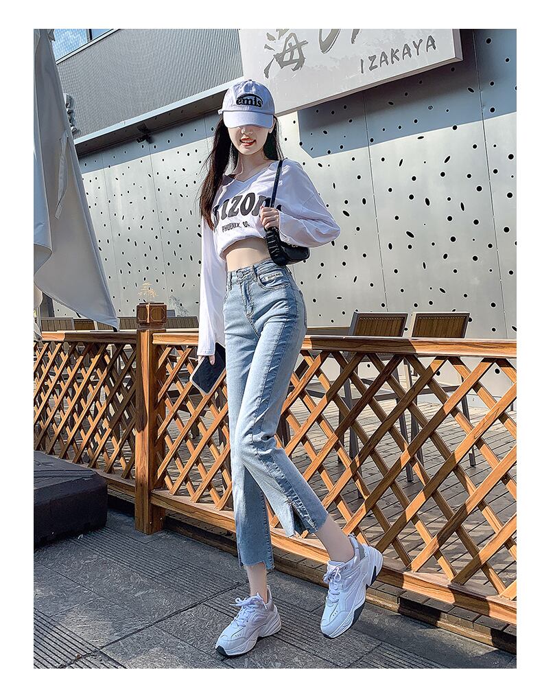 ブルーストレートジーンズレディースサマー2022新作秋ハイウエストスリット九点パンツシガレットパイプパンツは細い ハイウェスト 夏物 オータム 秋物 youqi50151994123