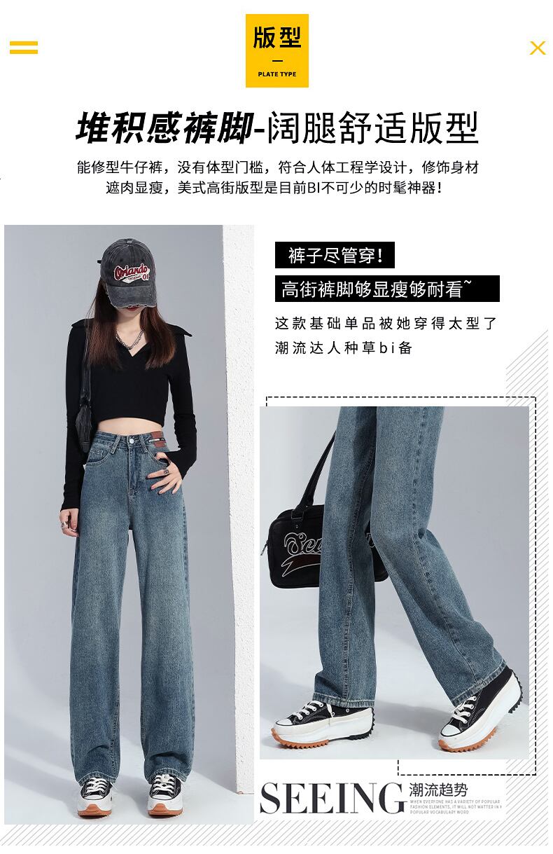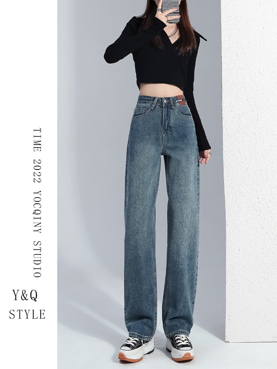 ジーンズの女性のストレート春と秋の 2022 新しい薄い秋ハイウエスト小さなワイドレッグモップ秋のパンツ スプリング 春物 オータム 秋物 youqi97326684802
