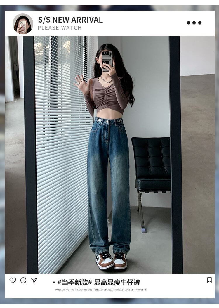 秋のストレートジーンズの女性のハイウエストオールマッチ 2022 新しいスリムワイドレッグレトロモップ秋のロングパンツ ハイウェスト オータム 秋物 youqi84148745718