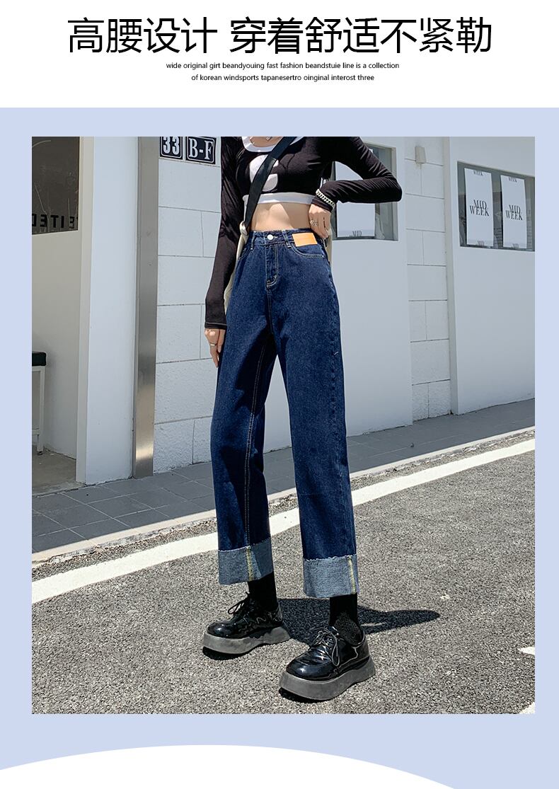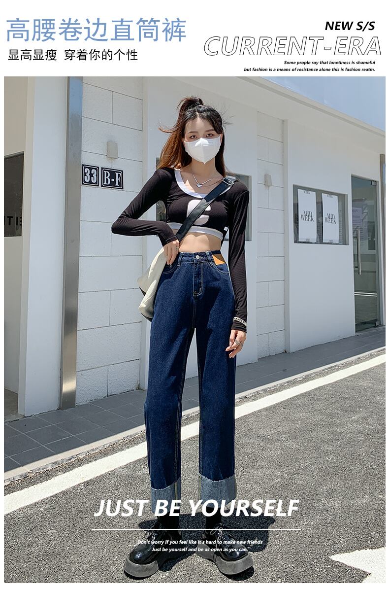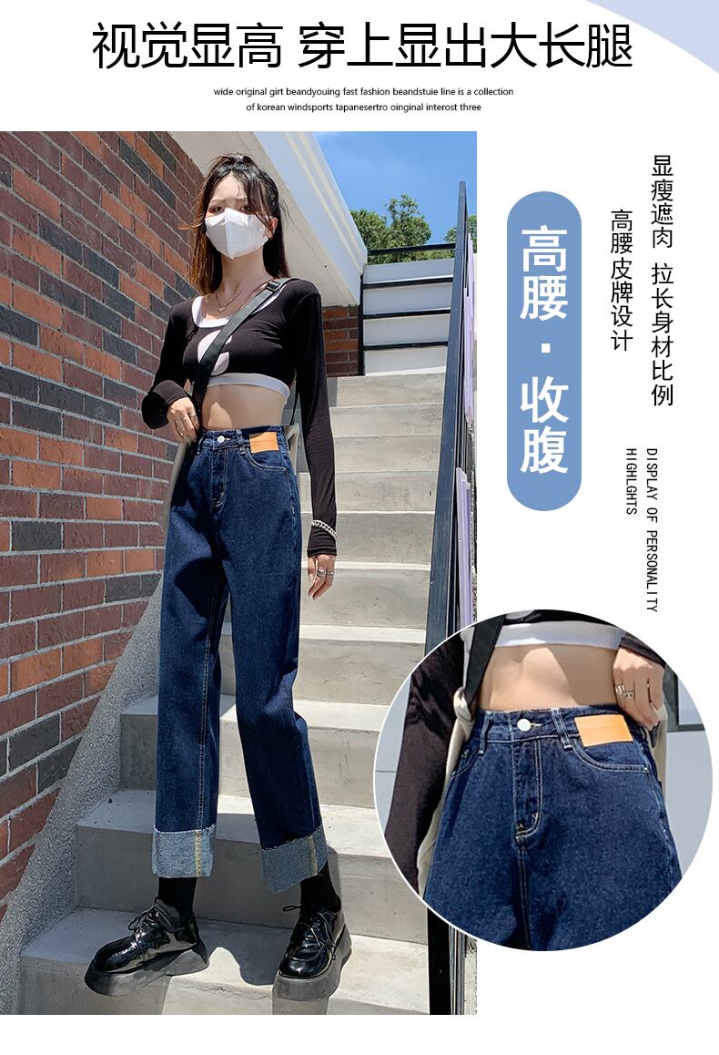 巻きストレートズボンデニム女性の秋のハイウエストの小さな 2022 新しい薄い緩いワイドレッグ秋のズボン オータム 秋物 youqi28836079245