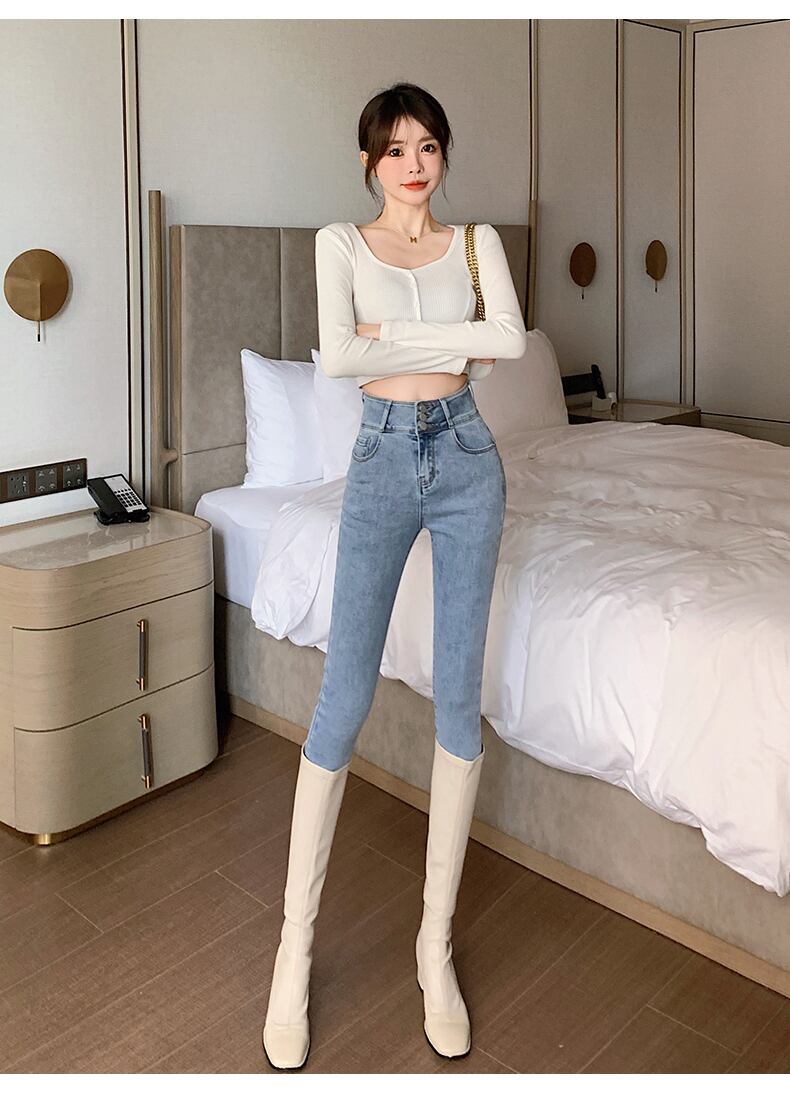 ニッチなデザインのピーチヒップジーンズの女性の小さなネットレッドは、ハイウエストのタイトなスキニーパンツを着用して、細い鉛筆を見せます ハイウェスト youqi29654411655