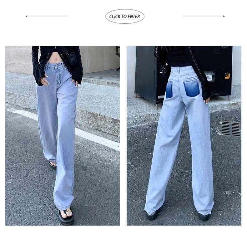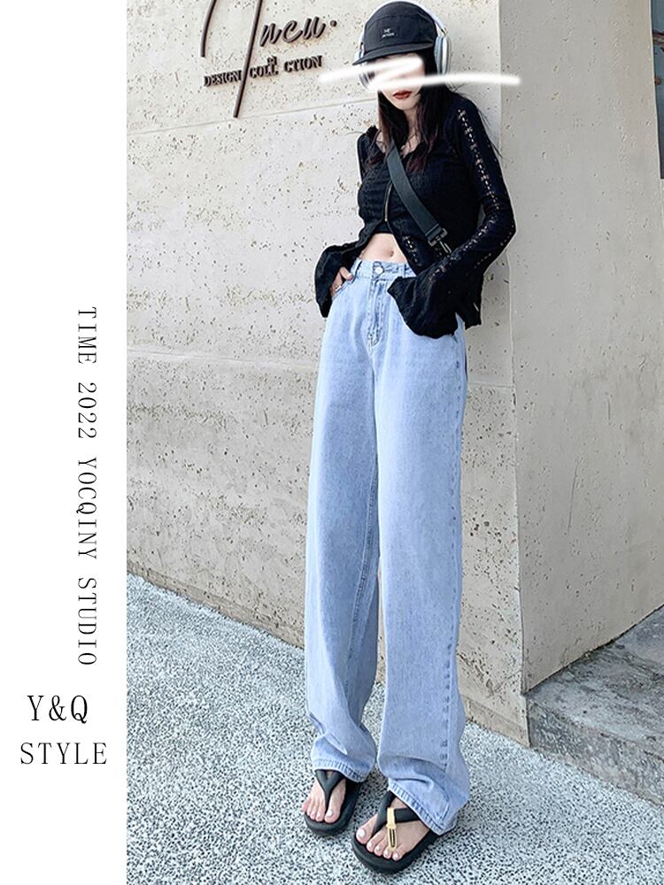 バックポケット コントラストカラー ハイウエスト ジーンズ レディース 2022年夏 秋新作 ワイドレッグ ルーズ ストレート トール モップパンツ ハイウェスト サマー 夏物 オータム 秋物 youqi37478035752