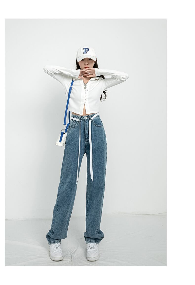 巾着ワイドレッグジーンズ女性の2022年秋の新しいスタイルは、薄くて小さな文字が床をドレープし、床をモップするストレートの秋服です オータム 秋物 youqi32114250876