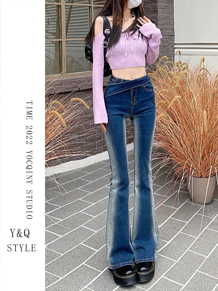マイクロ フレア ジーンズ女性のスリムなヨーロッパとアメリカのホット ガールズ 2022 初秋スタイル薄いウエスト グラデーション包帯床を拭く オータム 秋物 ヨーロピアン youqi45740031495