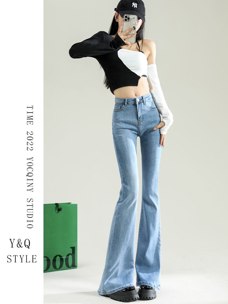 レトロで甘くてスパイシーな春と秋のマイクロラミネートスーパーストレッチジーンズ女性は薄くて背が高く、9点は快適で耐久性があります 大人ガーリー スウィート キュート カジュアル スプリング 春物 オータム 秋物 youqi57966076326