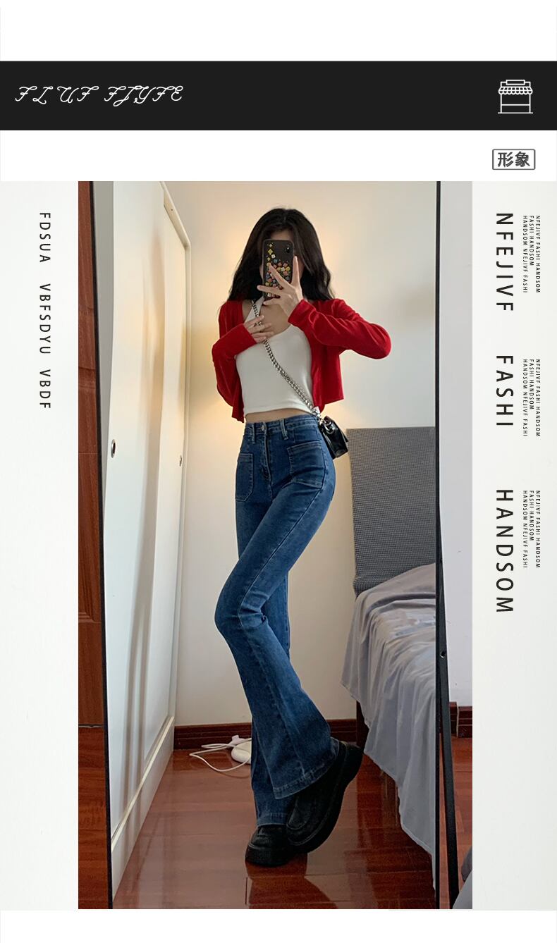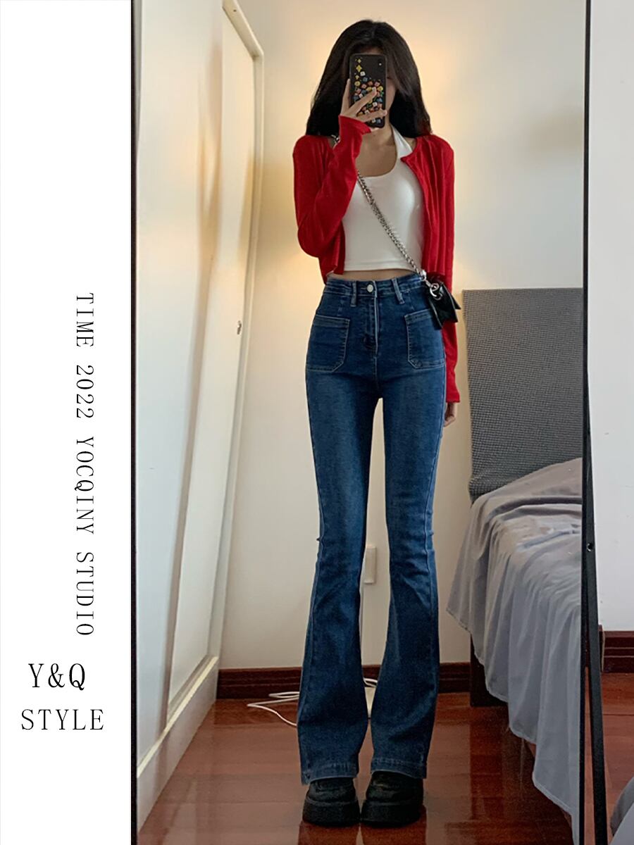 マイクロ フレア ジーンズ レディース 夏 デザイン センス ニッチ ハイウエスト 細身 ホースシュー パンツ 小さめ ハイストリート 春秋 レトロ ハイウェスト スプリング 春物 サマー 夏物 オータム 秋物 youqi14411766105
