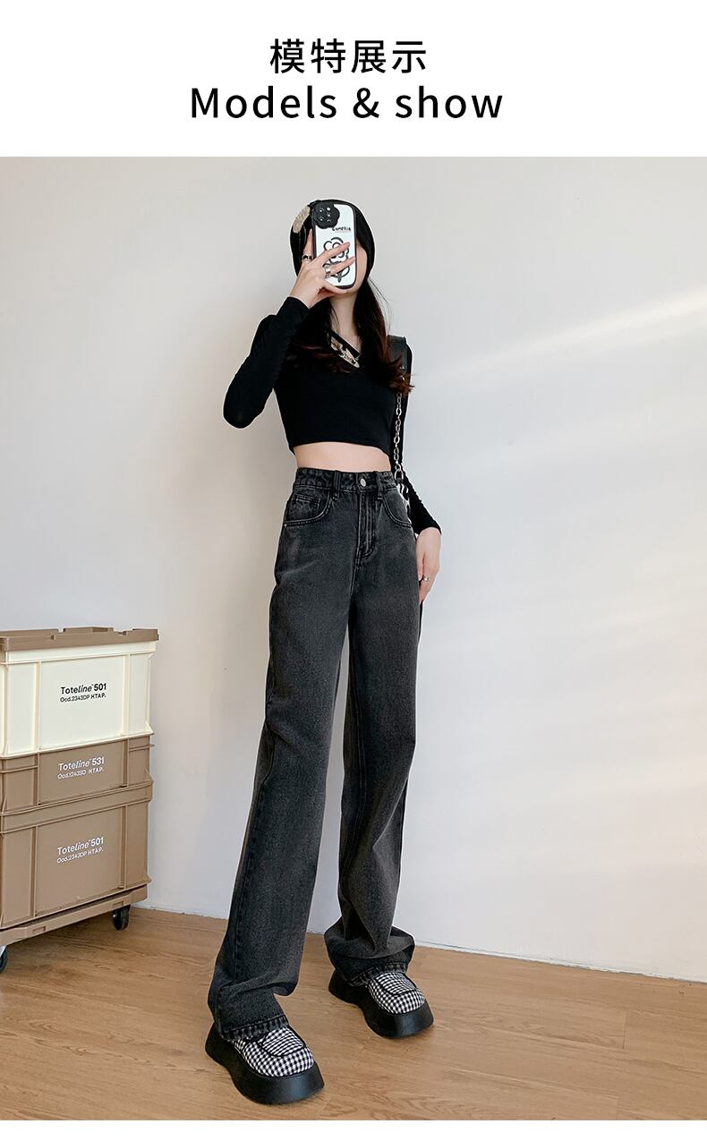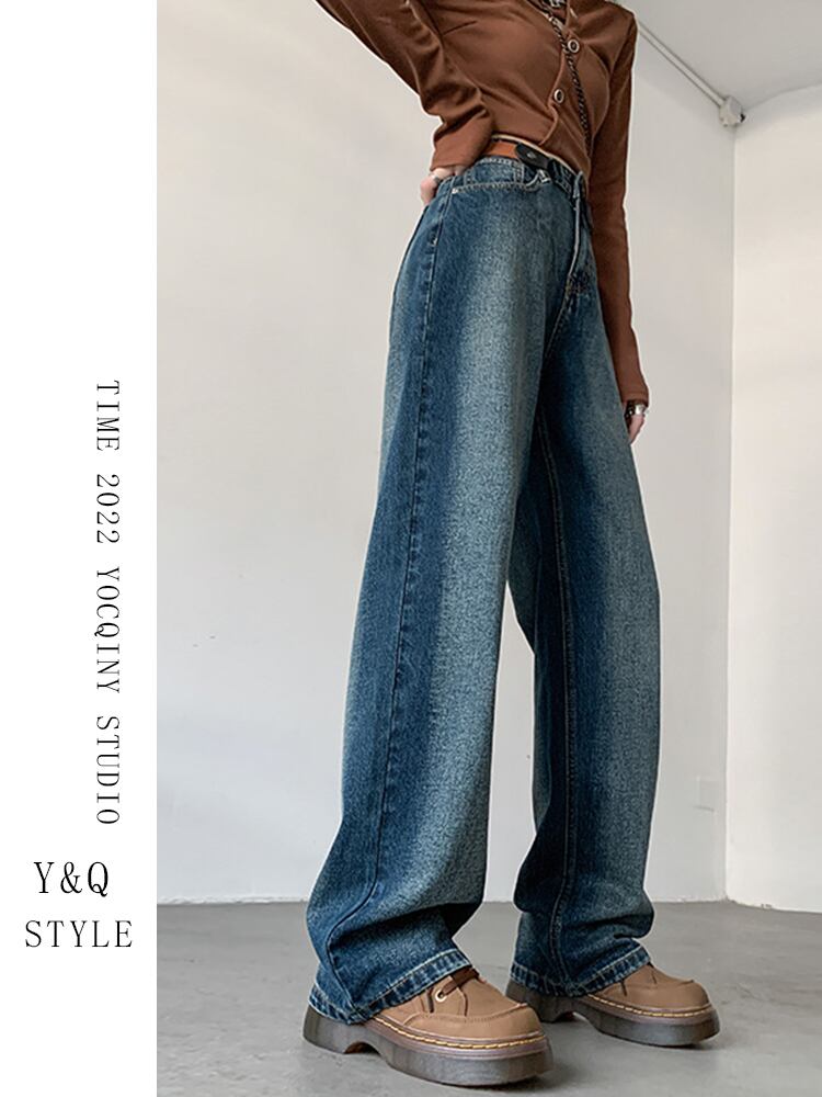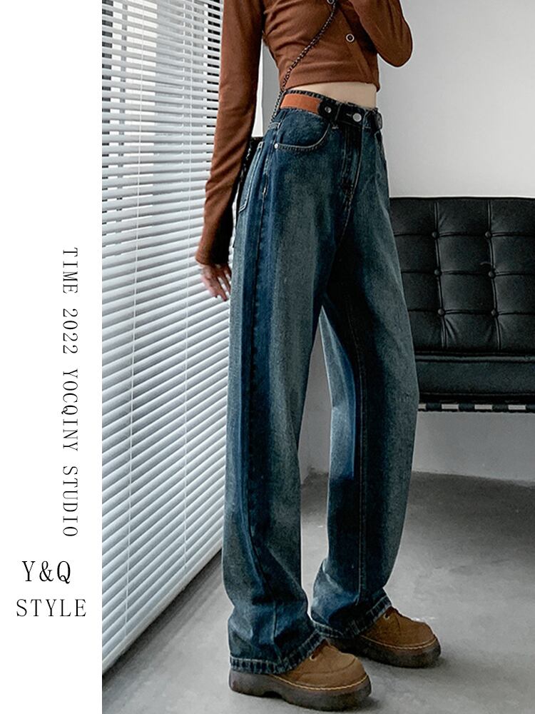ストリート グラデーション カラー ワイドレッグ シン ジーンズ レディース 2022年秋 ルーズ ハイモア オールマッチ ストレートレッグ パンツ トレンド オータム 秋物 youqi10902741614