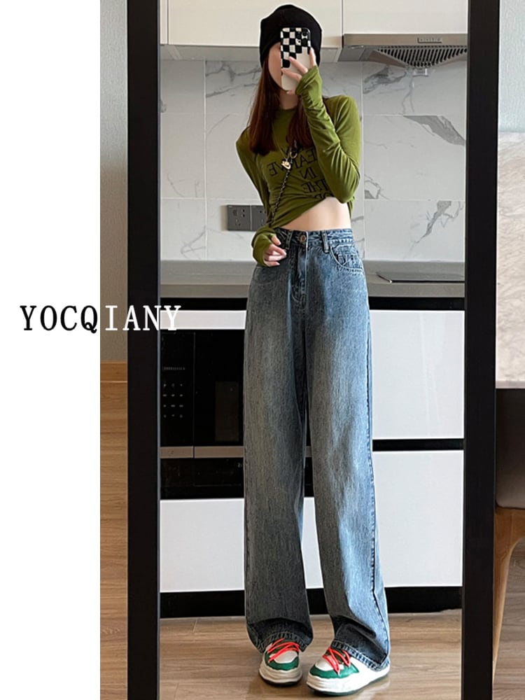 レトロストレートレッグパンツデニムレディースハイウエスト薄手ルーズ2022初秋の新スタイル薄手万能ドレープワイドレッグパンツ オータム 秋物 youqi99139836387