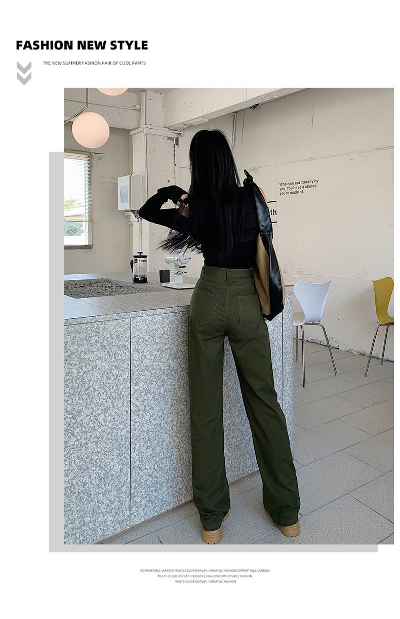 2022年初秋のアメリカのレトロストリートアーミーグリーンストレートジーンズ女性の新しいハイウエストは細くて背が高いです ハイウェスト オータム 秋物 youqi64414853273