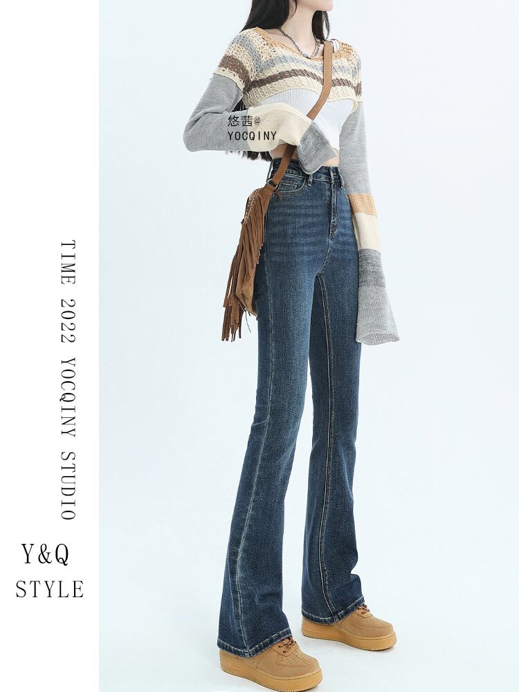 ストリート イン マイクロフレア ジーンズ レディース 2022年秋 細身 ハイウエスト ホースシュー パンツ スリム デザイン センス モップ s オータム 秋物 youqi86444439415