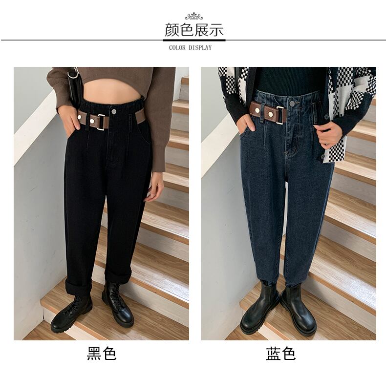2022 新ハイウエストジーンズ子供の小さな秋香港スタイル弾性ウエストハーレムパンツ大根パパパンツ エラスティック 伸縮 オータム 秋物 youqi72407180843