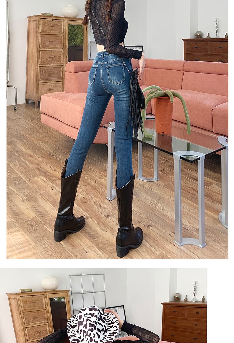 香港スタイルウォッシュブルータイトハイウエストジーンズ女性の弾性たばこパイプズボン新しいスリム鉛筆鉛筆パンツ ハイウェスト エラスティック 伸縮 youqi73012476143