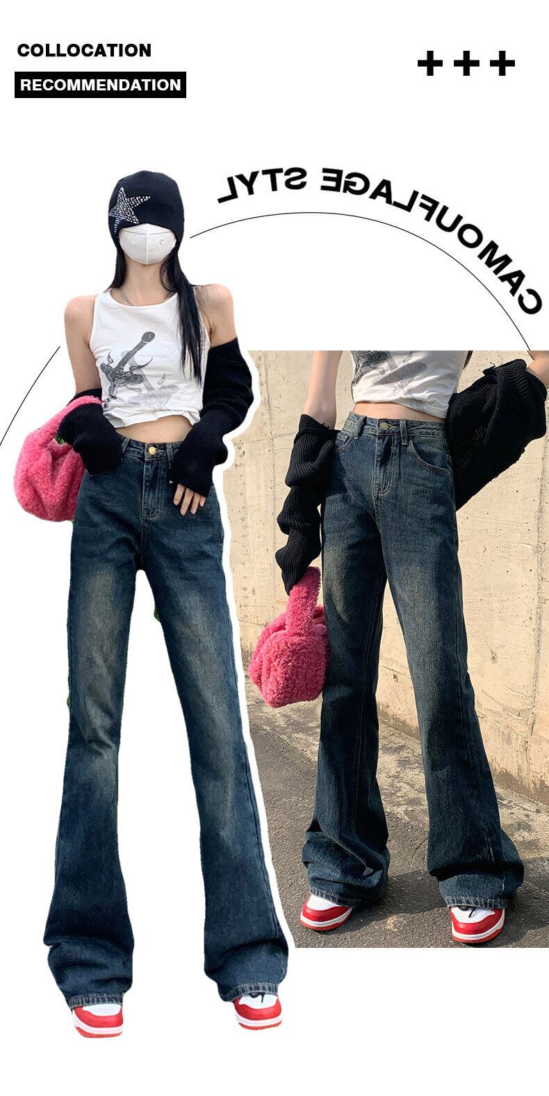2022 春と秋の新しいデザインルーズワイドレッグマイクロフレアジーンズ女性のハイウエストと薄いモップホースシューパンツ ハイウェスト スプリング 春物 オータム 秋物 youqi87866538358