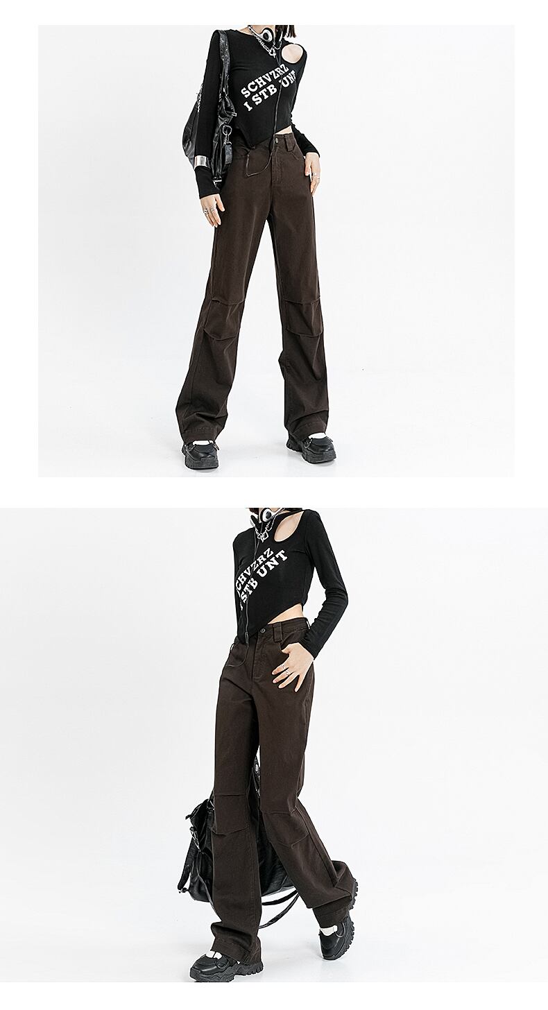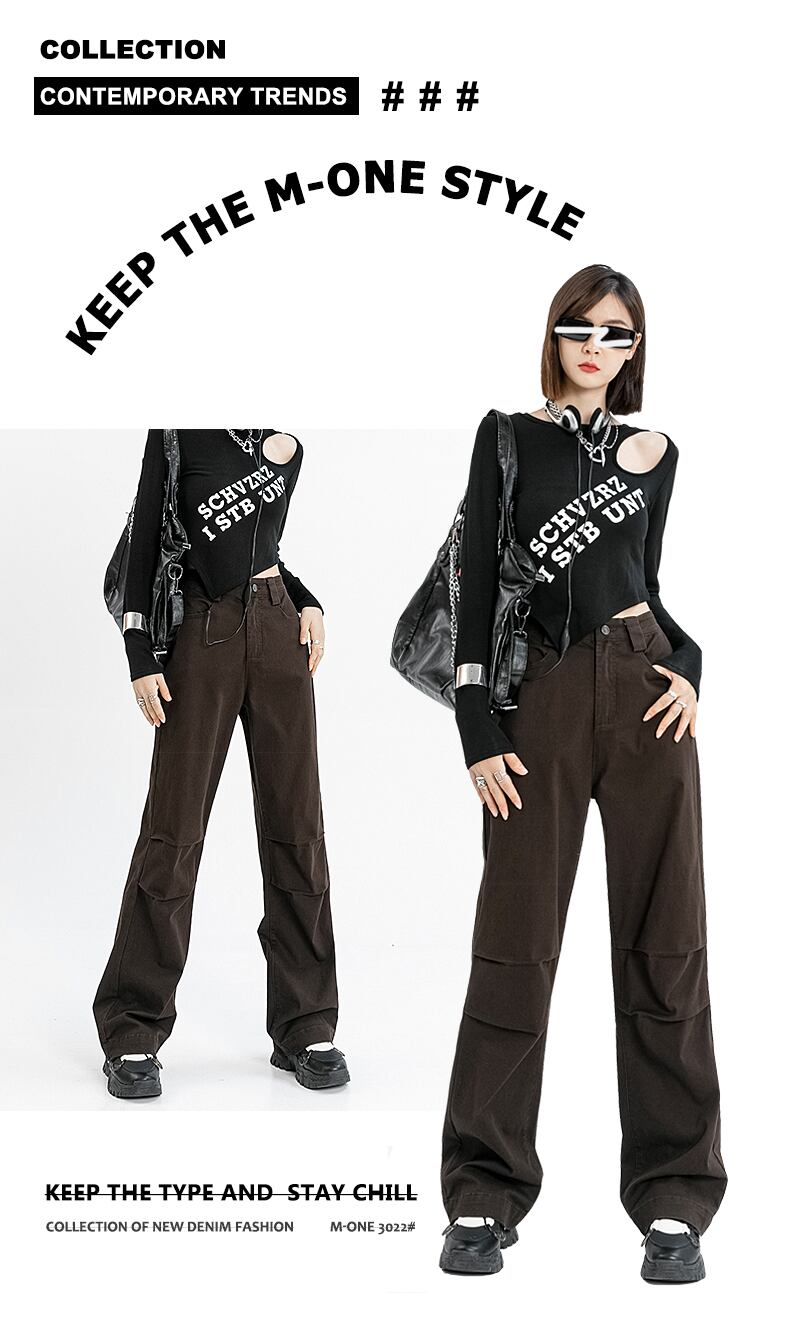 ストリートインタイドヨーロッパとアメリカのハイウエストジーンズ女性ルースカジュアルワイドレッグパンツダークブラウンパーソナリティストレートパンツ ハイウェスト ワイドパンツ ヨーロピアン youqi88128028742