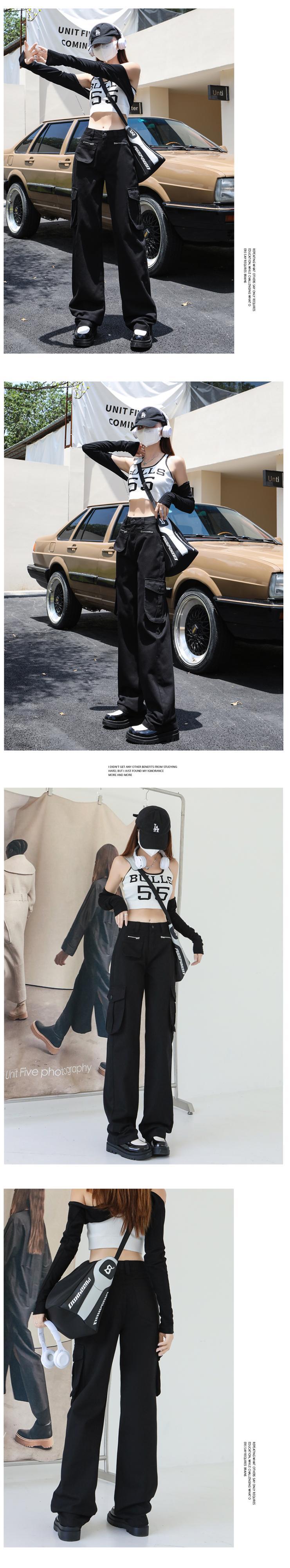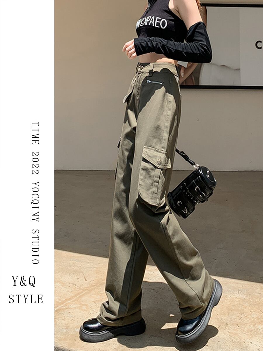 オーバーオール女性のストレートレッググリーンジーンズハイウエストルーズ 2022 秋の新しいスタイルの薄いワイドレッグモップロングパンツ オータム 秋物 youqi54271038525