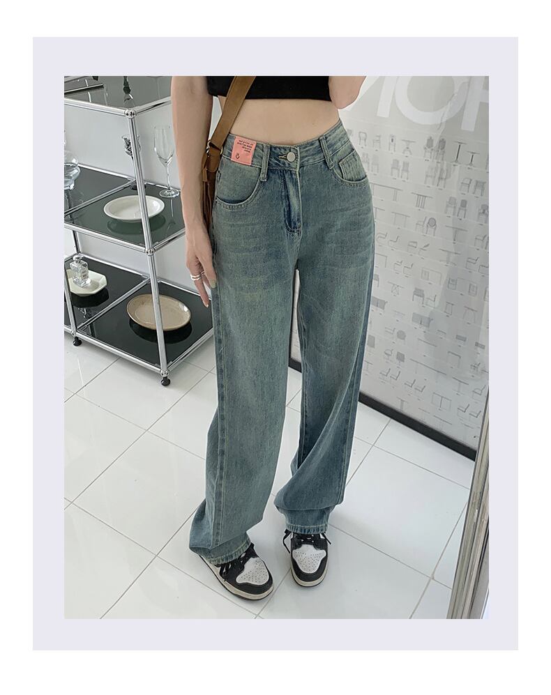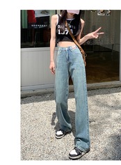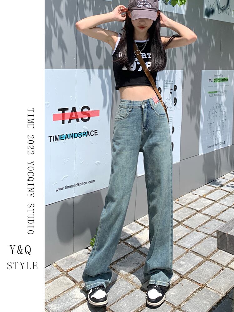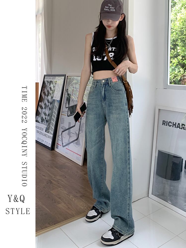 クリック ハイウエスト ワイドレッグ ジーンズ 女性の夏と秋の新しいレトロ ブルー ストレート ルーズ ルーズ 肉を覆う薄いモップ パンツ サマー 夏物 オータム 秋物 youqi58013903607