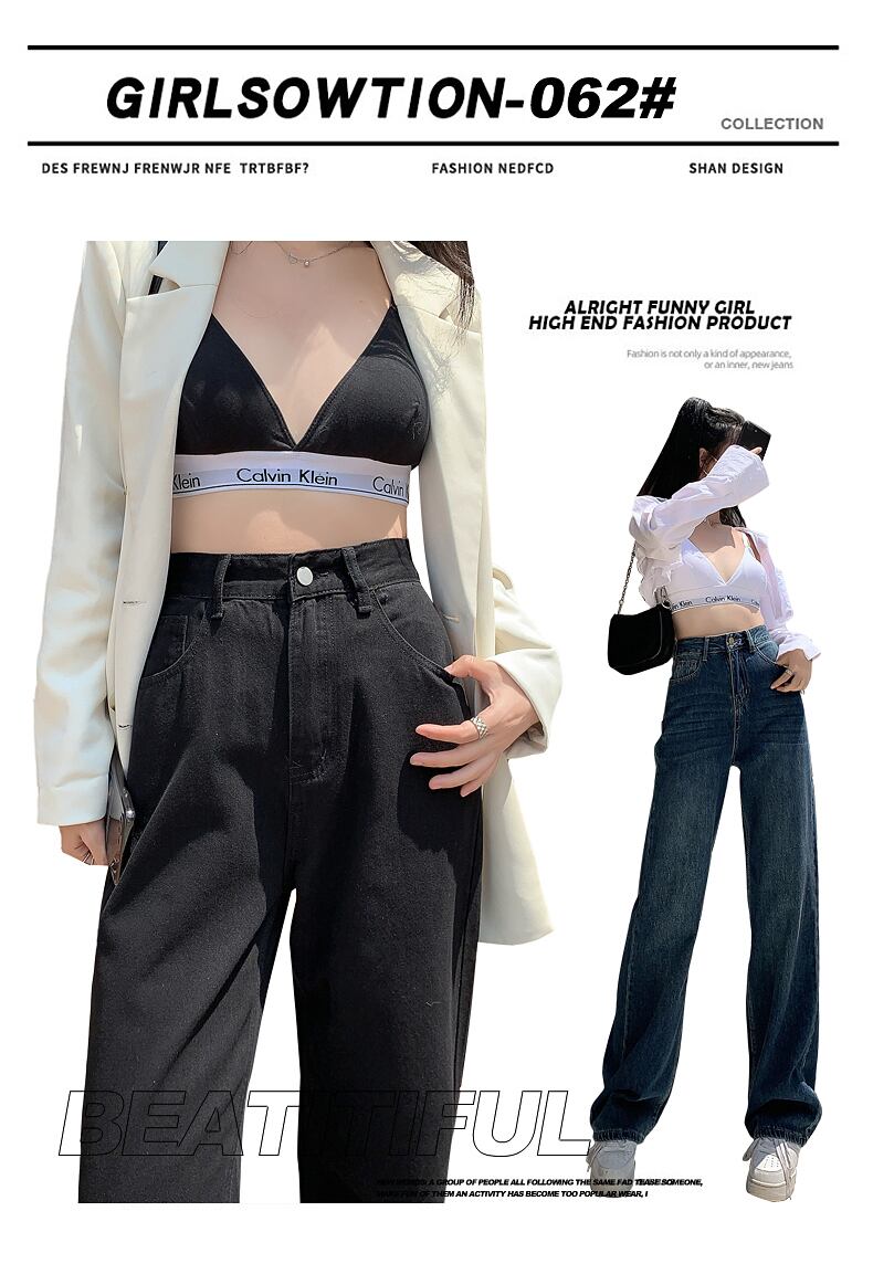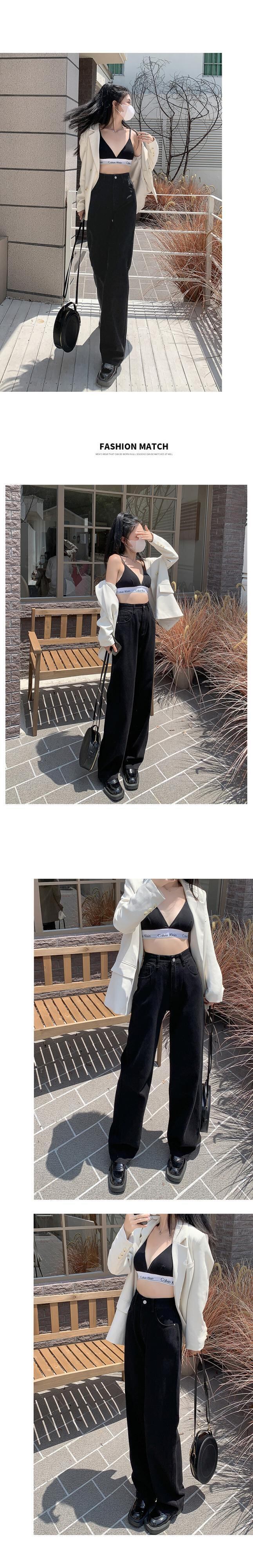 初秋の新しいスタイルの甘くてクールなハイウエストワイドレッグジーンズの女性の黒いストレートパンツは細くて背が高いです ブラック 大人ガーリー スウィート キュート カジュアル オータム 秋物 youqi73183833644
