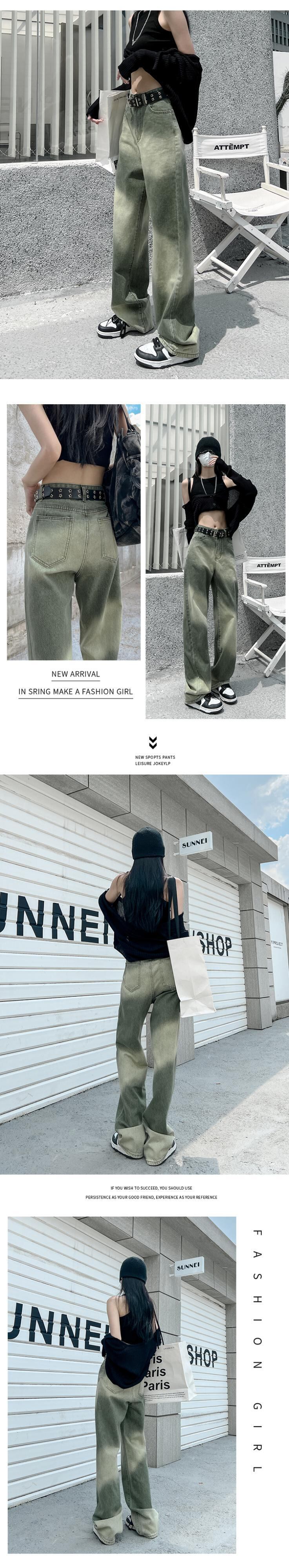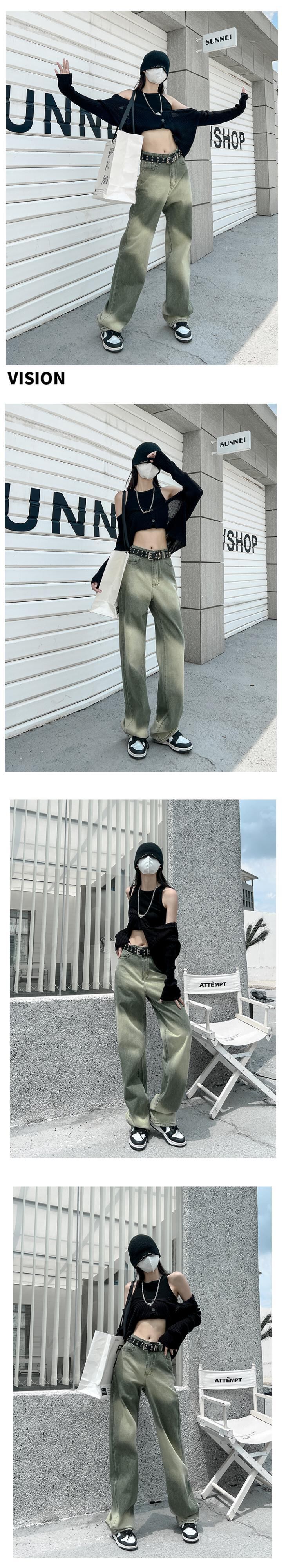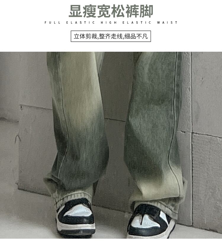 タイダイ ワイドレッグ ジーンズ レディース ハイウエスト ドレープ 2022年秋 新しいスタイル 薄くてモップ デザイン ストレートレッグ パンツ youqi57284653077