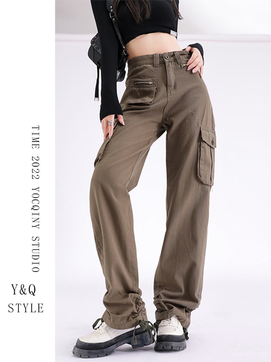 アーミーグリーン オーバーオール デニム ストレート 女性 巾着 ハイウエスト 夏 デザイン ゆったり ハイストリート 2022 アメリカ モップ ハイウェスト サマー 夏物 youqi38688203997