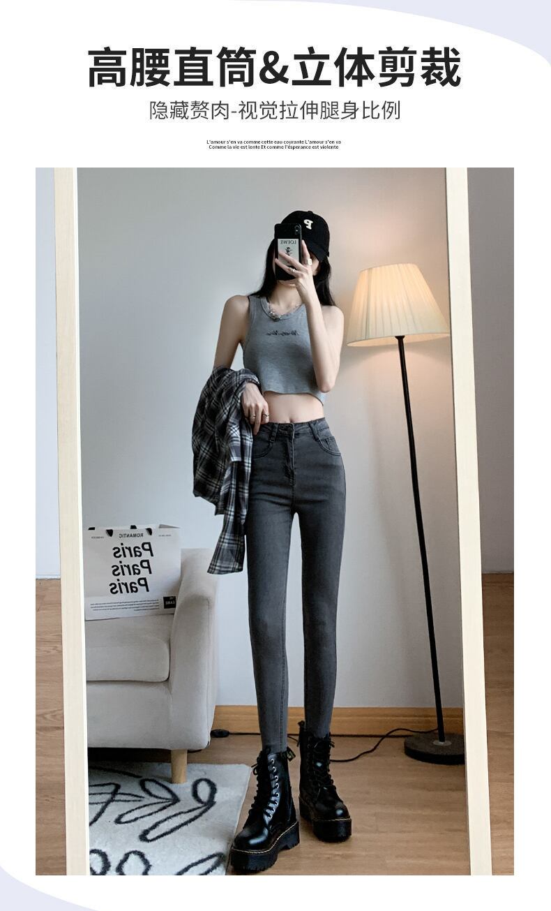 スモーク グレー スキニー ジーンズ女性の弾性ハイ ウエスト春と秋の 2022年薄い 9 点タイト ペンシル パンツ秋冬アウターウェア ハイウェスト エラスティック 伸縮 スプリング 春物 オータム 秋物 ウィンター 冬物 youqi37511543077