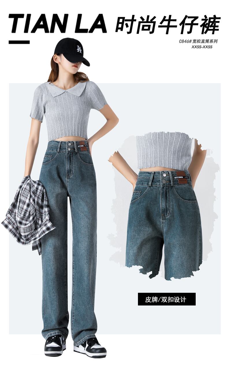 春と秋の女性の 2022 爆発ウエスト ワイドレッグ ジーンズ ノスタルジックなブルー ストレート チューブ ルーズ スリム スプリング 春物 オータム 秋物 ワイドパンツ youqi89258852077