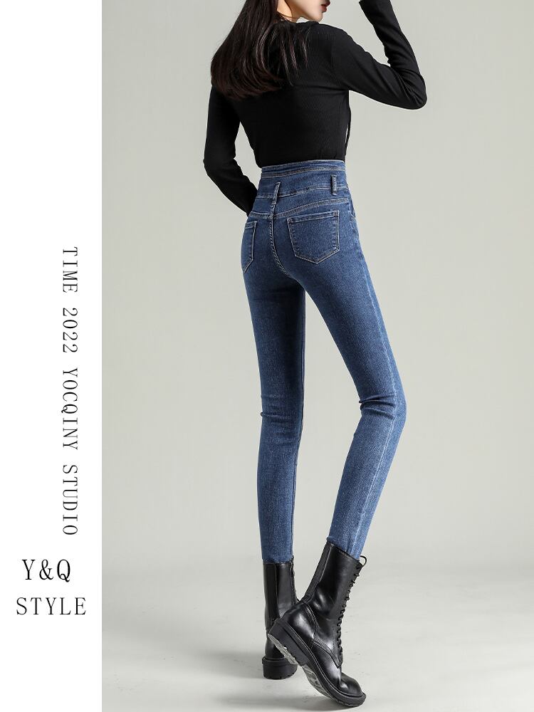 小さな女性のスキニー ジーンズ スリム フィット小さな足ハイ ウエスト ペンシル パンツは薄くて背の高いレトロ ブルー秋の新しいスタイル ハイウェスト オータム 秋物 youqi19496396729