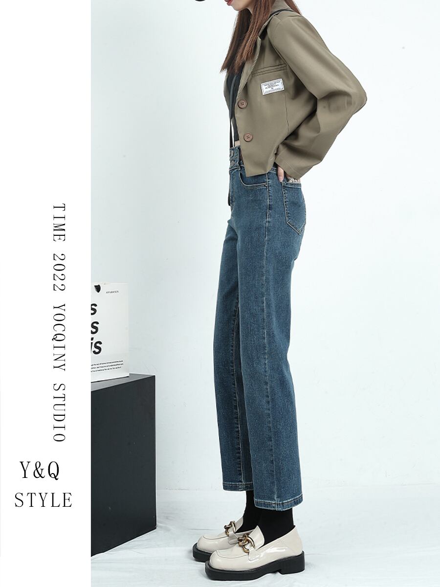 レトロなストレート ジーンズ女性のハイ ウエスト秋服 2022 新しいスタイル薄いワイド脚 9 点秋のスモーク パイプ パンツ冬 ハイウェスト オータム 秋物 ウィンター 冬物 ワイドレッグ ワイドパンツ youqi34728905337