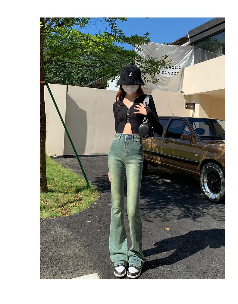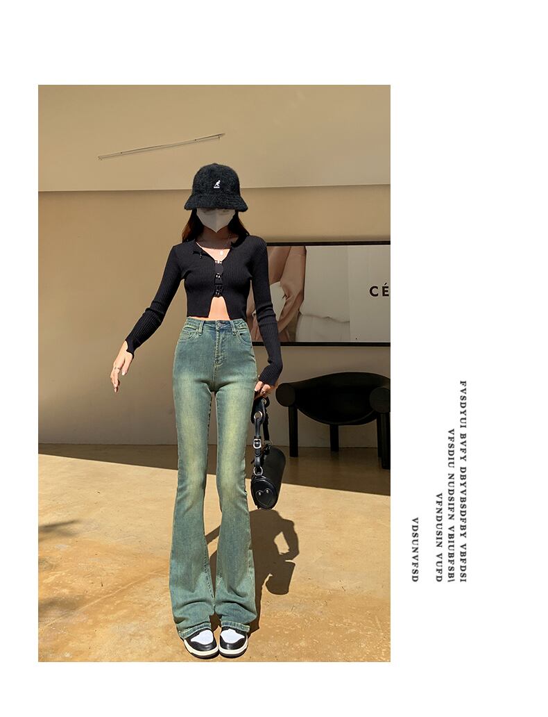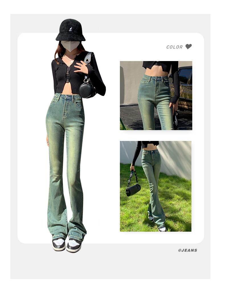 アメリカのレトロなノスタルジックな青いマイクロラデン ジーンズ女性の春と秋の 2022 年の新しいハイウエストの薄い弾性フレア パンツ レッド ブルー エラスティック 伸縮 スプリング 春物 オータム 秋物 youqi55263503827