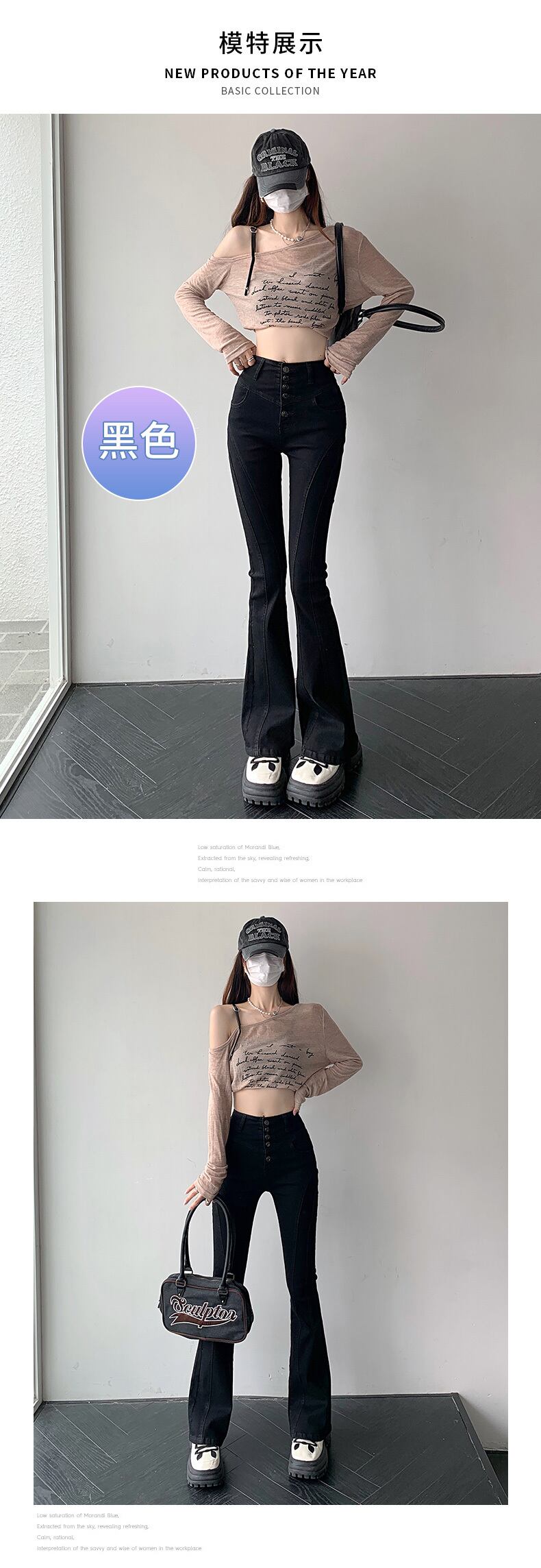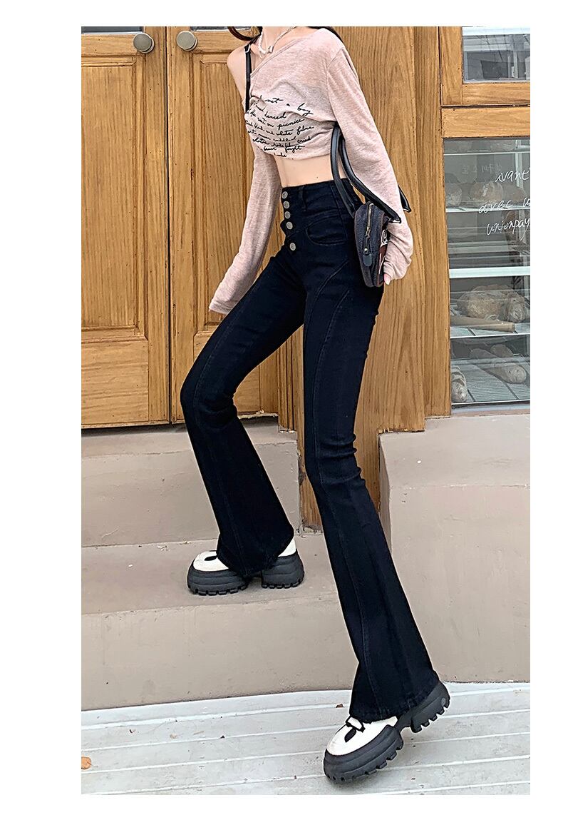 ブラック マイクロ フレア パンツ レディース ジーンズ 2022年夏新作 超ハイウエスト ブレスト デザイン センス スリムで万能 ハイウェスト レッド サマー 夏物 youqi79989227954