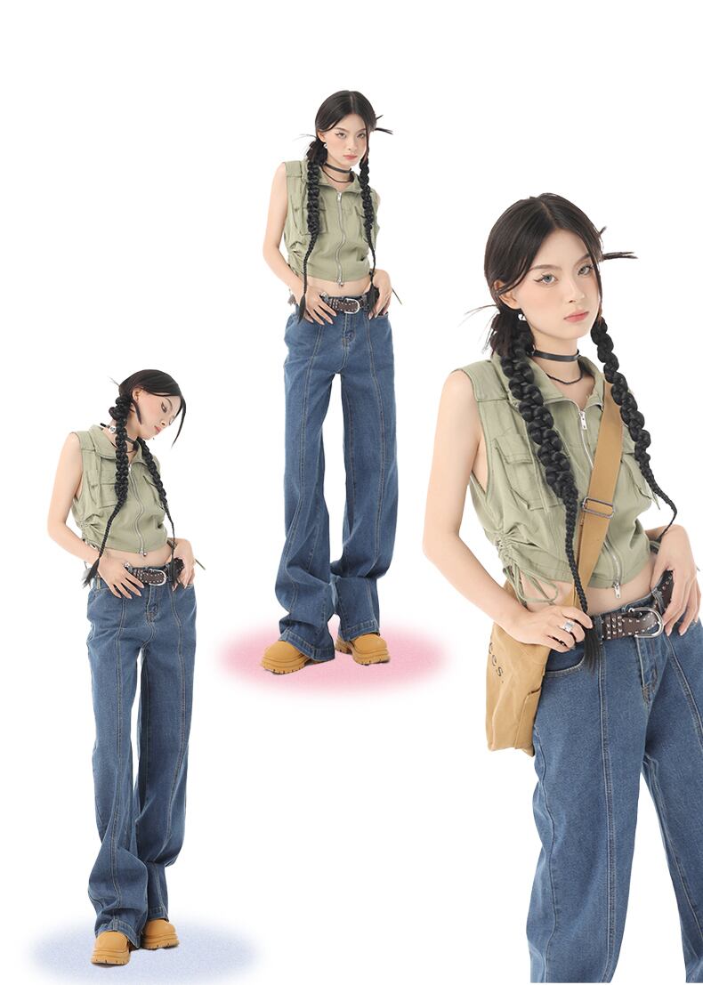 甘くてクールなクリック ワイドレッグ ジーンズ レディース ルーズ ドレープ モップ パンツ ステッチ 背が高くて薄くてトレンディ 大人ガーリー スウィート キュート カジュアル youqi53061686509