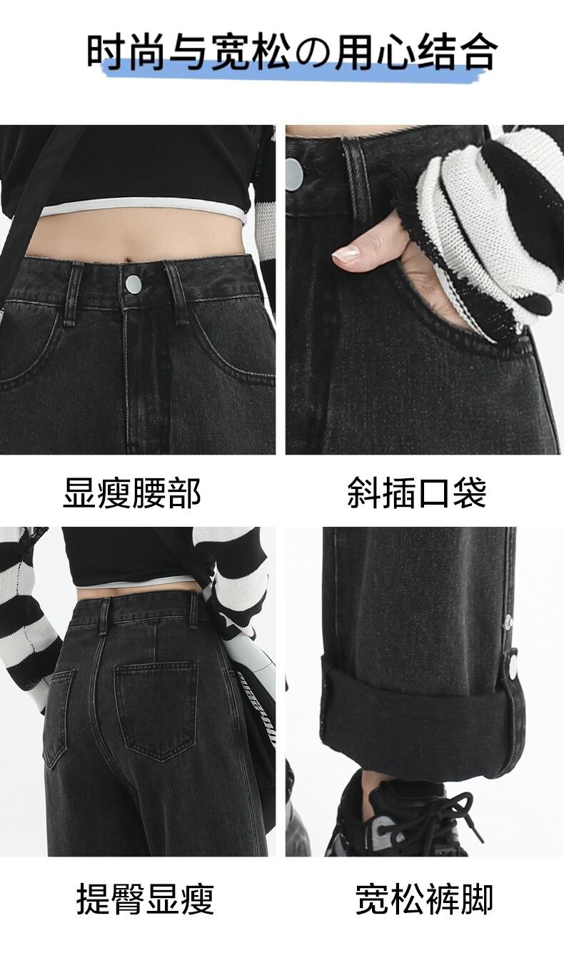 小さな男性は黒灰色のハイウエストストレートジーンズ女性2022ルーズドレープワイドレッグ9点を薄くて床を拭く ハイウェスト ブラック ワイドパンツ youqi74934493109