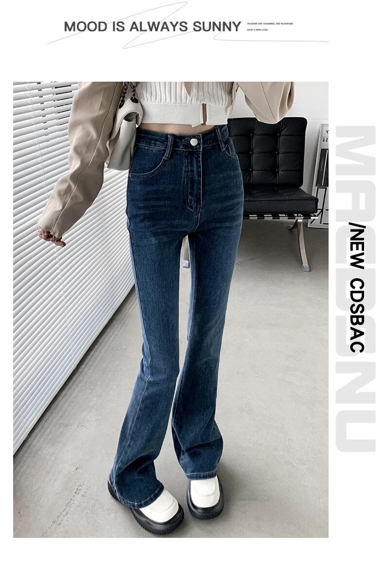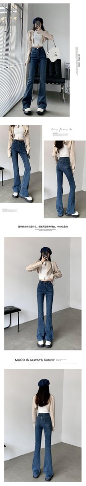 欧米風パンツ レトロブルー ハイウエスト マイクロフレア スリム ワイドレッグ ジーンズ レディース 背の高い 掃き掃除 おしゃれ シック ヨーロピアン youqi98417815436