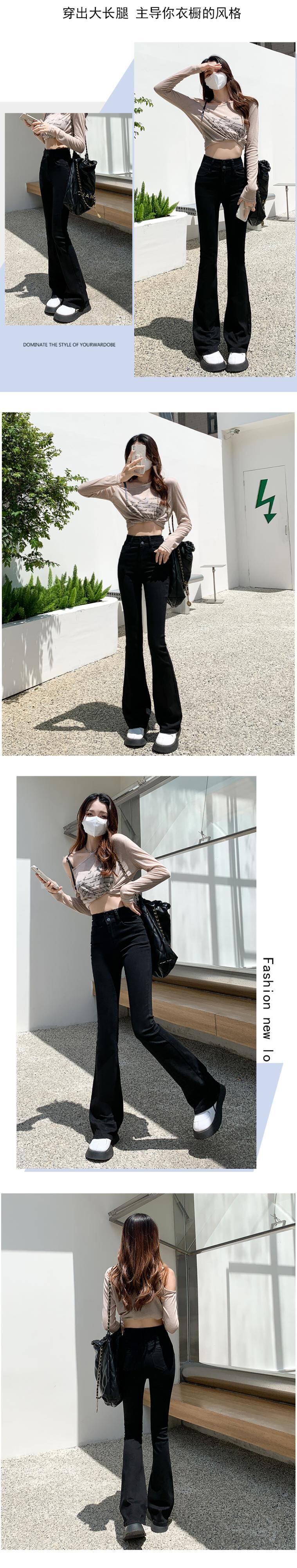 アメリカンスタイルのハイウエストマイクロブレードジーンズ女性の秋のスリムフィットと伸縮性のあるハイストリートフレアパンツ伸縮性のあるヒップリフティングとハイ レッド エラスティック オータム 秋物 youqi29990139546