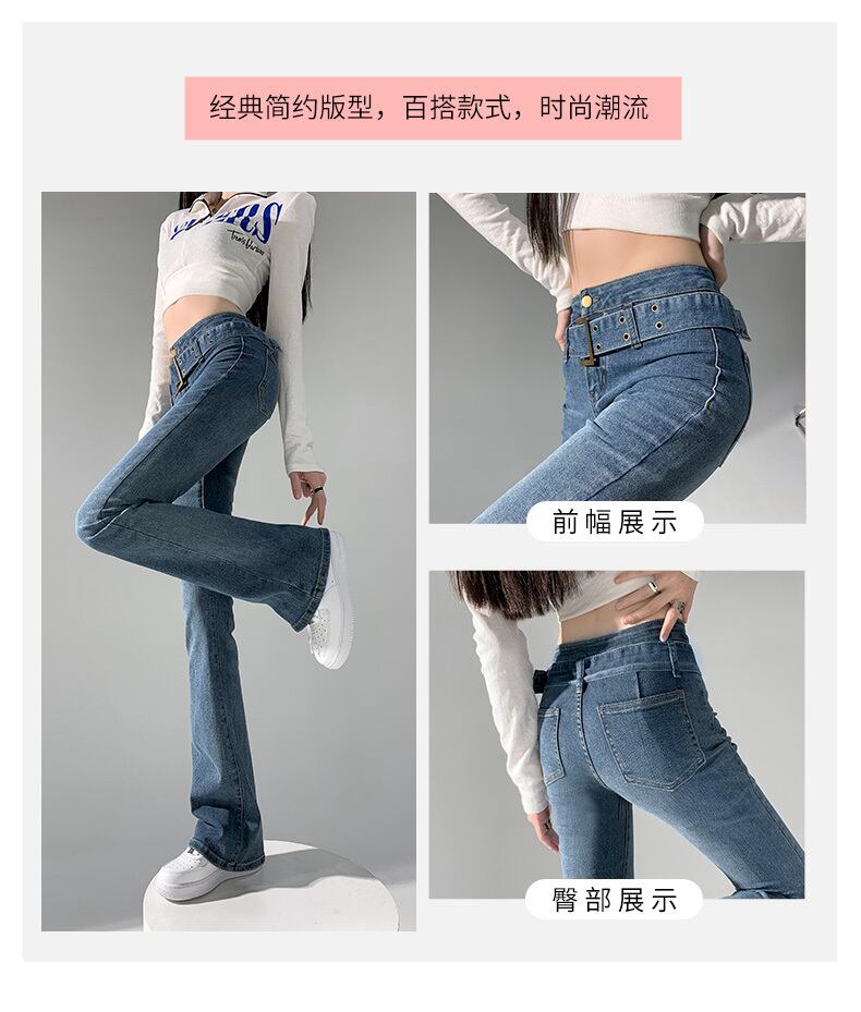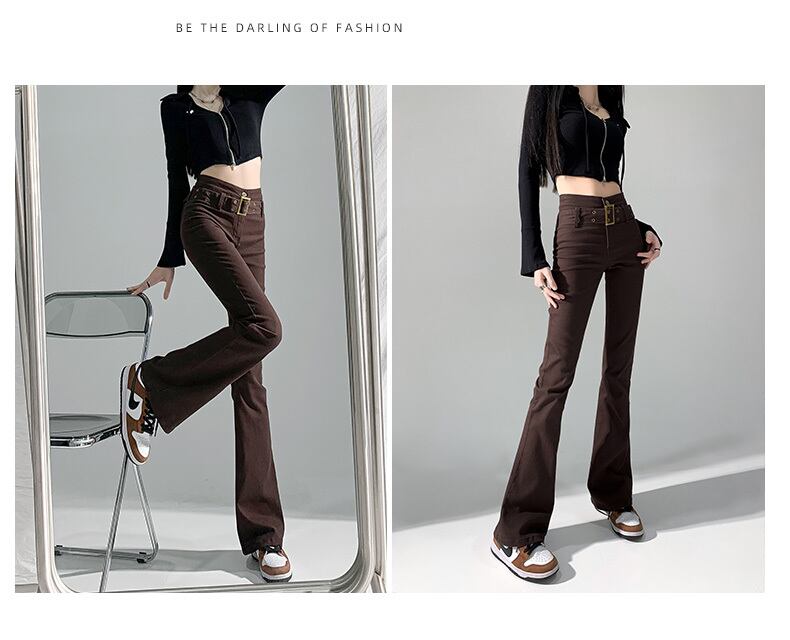 レトロ ブルー マイクロ ズボン タイト ハイ ウエスト ジーンズ女性の秋の新しいスリム フレア ズボン掃討ズボンは背が高い ハイウェスト レッド オータム 秋物 youqi22821255052