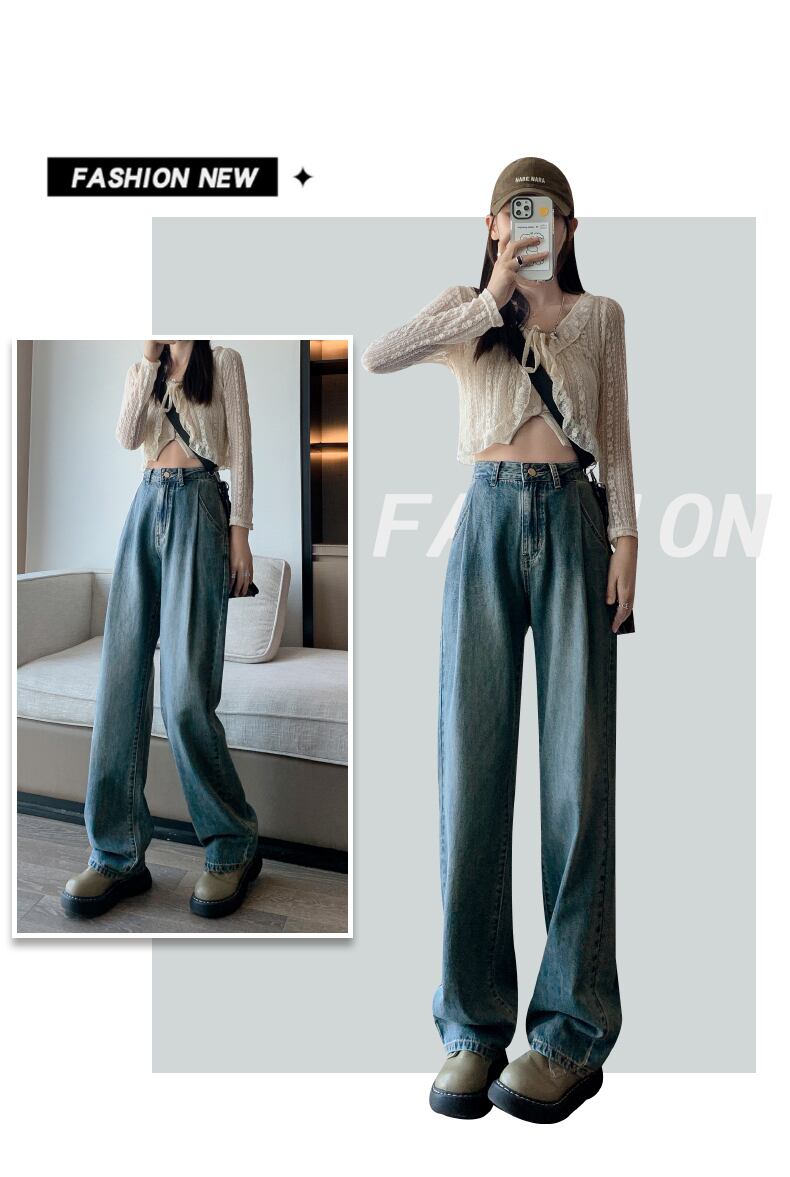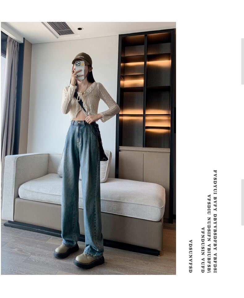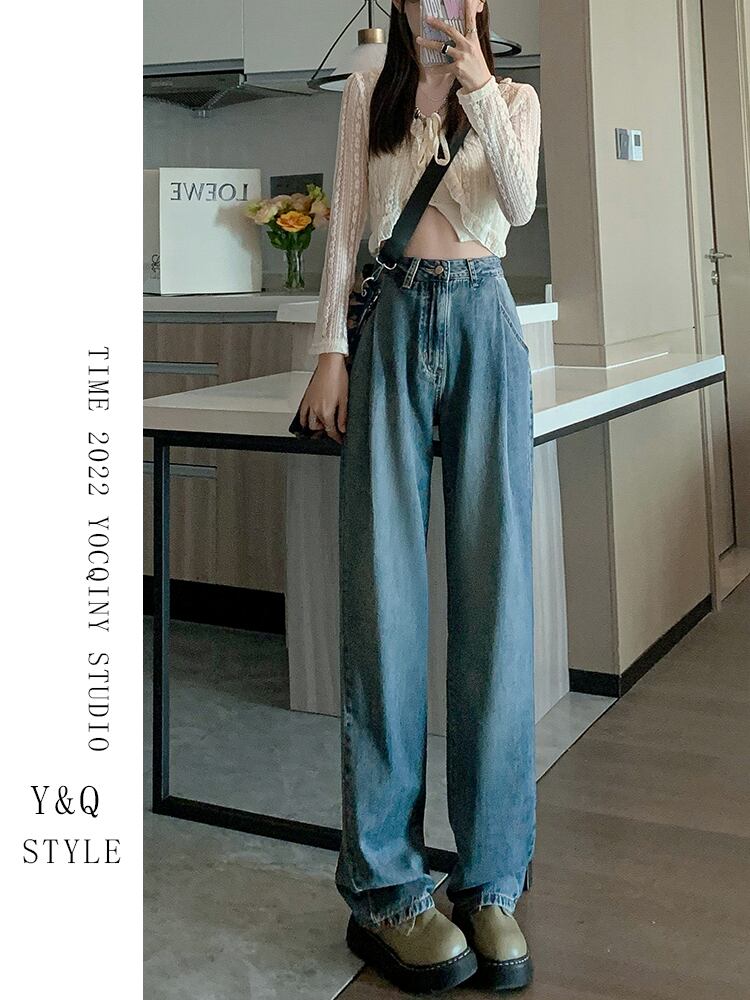 2022 新しいレトロブルージーンズの女性のドレープルーズワイドレッグスリムオールマッチストレートレッグモップパンツのトレンド youqi32227894372