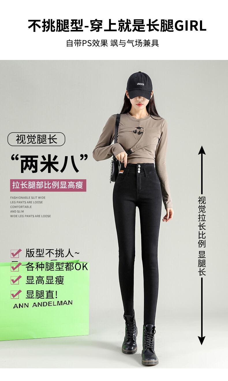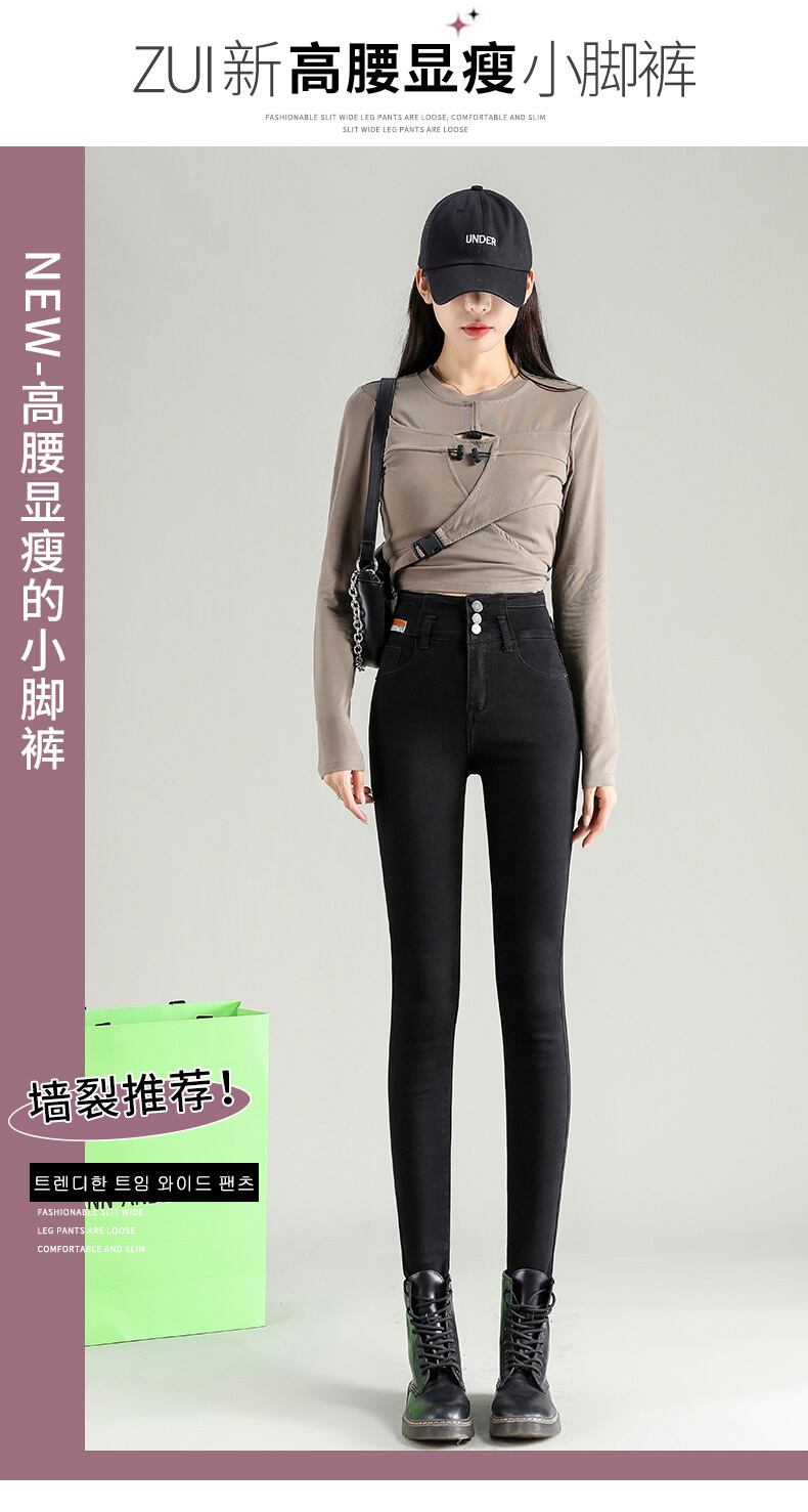 ニッチなデザインセンスブラックグレーマルチボタンハイウエストペンシルパンツスリムジーンズ女性スモールスリムペンシルパンツ ハイウェスト youqi97430248586