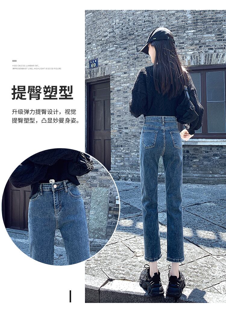 小さい背の高い腰のジーンズの女性のまっすぐな 8 点の 9 点のタバコのパイプのズボンの新しいすべての試合のショーの背の高いと薄いの潮 youqi56837714210