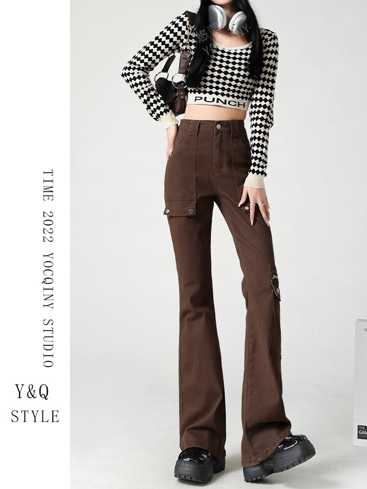 アメリカン ワークウェア ジーンズ レディース ニッチ ブラック ウエスト マイクロ フレア パンツ 薄くて背が高い 汎用性 youqi52540428661