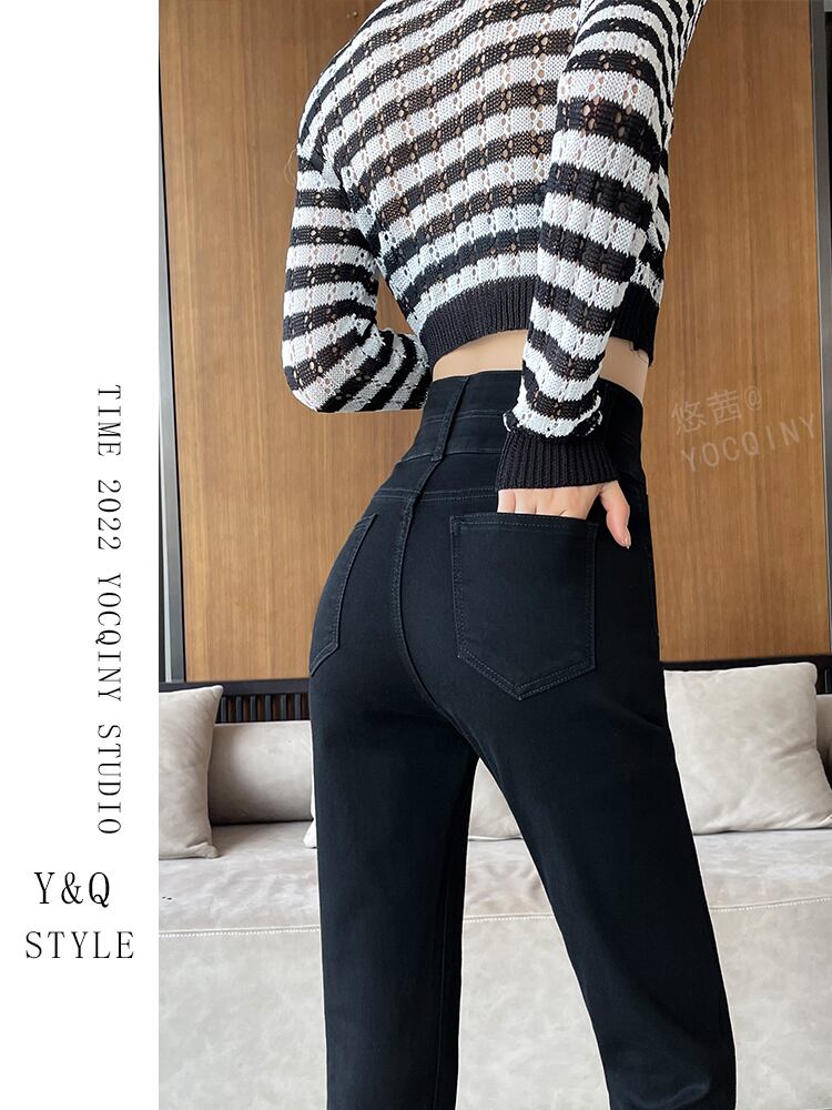 ウエストの小さいストレート ジーンズ女性の 2022 秋の新しいデザイン 9 ポイント黒タバコ パイプ パンツは薄くてトレンディです ブラック オータム 秋物 youqi32229441098