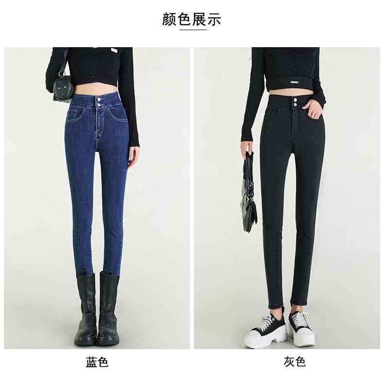 ストリート イン秋の新しい弾性ダブルブレスト ハイウエスト ジーンズ女性のスキニー パンツ オールマッチ ペンシル パンツ v エラスティック 伸縮 オータム 秋物 youqi6065801815