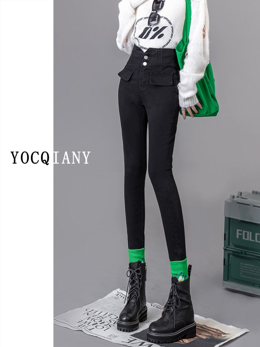 黒のスキニー ジーンズ女性の春と秋の超ハイ ウエスト痩身デザイン ニッチ スリム ペンシル 9 ポイント パンツ トレンディなイン ハイウェスト ブラック スプリング 春物 オータム 秋物 youqi32512055333