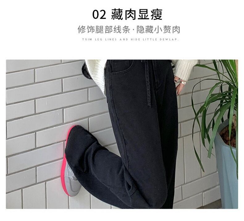 取り外し可能なブラック ドローストリング ワイドレッグ ジーンズ レディース ルーズ ドレープ ハイウエスト ストレートレッグ ロング パンツ トレンディな秋冬 オータム 秋物 ウィンター 冬物 youqi55631291590