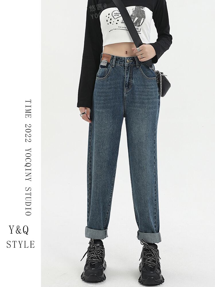 レトロなブルーのハイウエスト ジーンズ女性の秋と冬のルーズ ハーレム パンツ 2022 ショー薄くて垂れ下がったワイドレッグ大根ダディ パンツ オータム 秋物 ウィンター 冬物 youqi51067641054