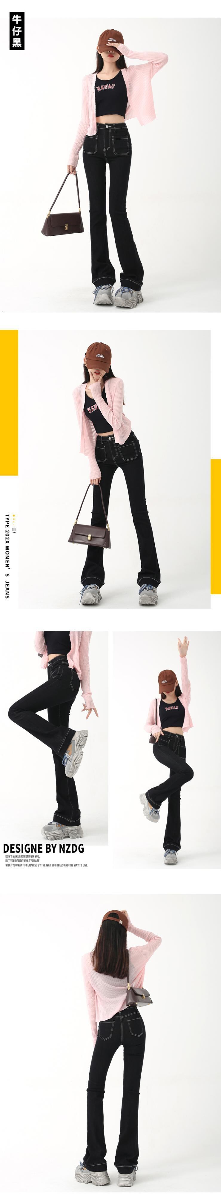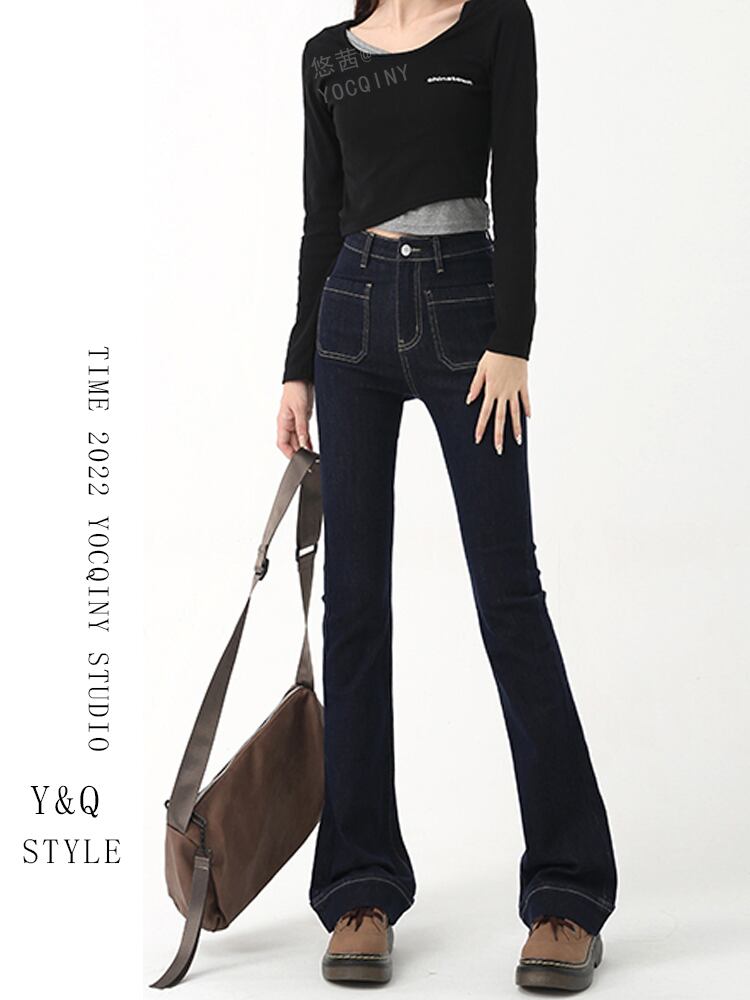 デニムブルーが色褪せないマイクロパンツ スリムな高弾性ジーンズ レディース ハイウエスト フレアパンツ 細身で背の高いデザインセンス ハイウェスト レッド エラスティック 伸縮 youqi64033461714