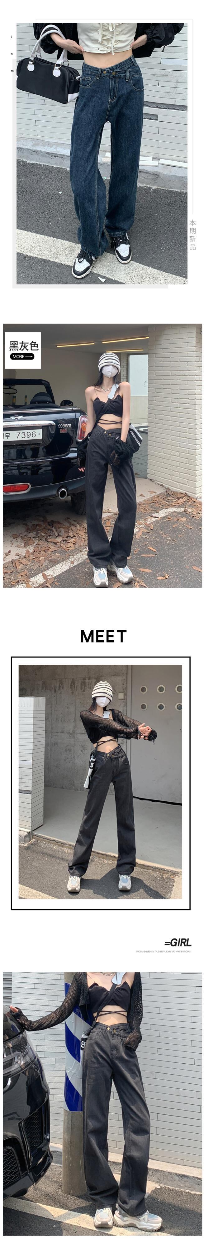 イレギュラーウエストバンドブラックグレーワイドレッグパンツレディースハイウエスト縦型ストレートレッグジーンズ秋冬人気スタイル2022ニッチモデル オータム 秋物 ウィンター 冬物 youqi56222808056