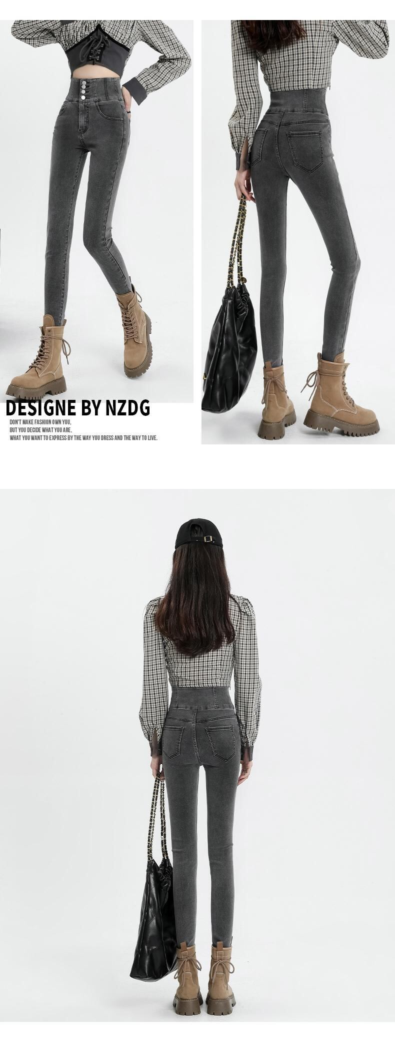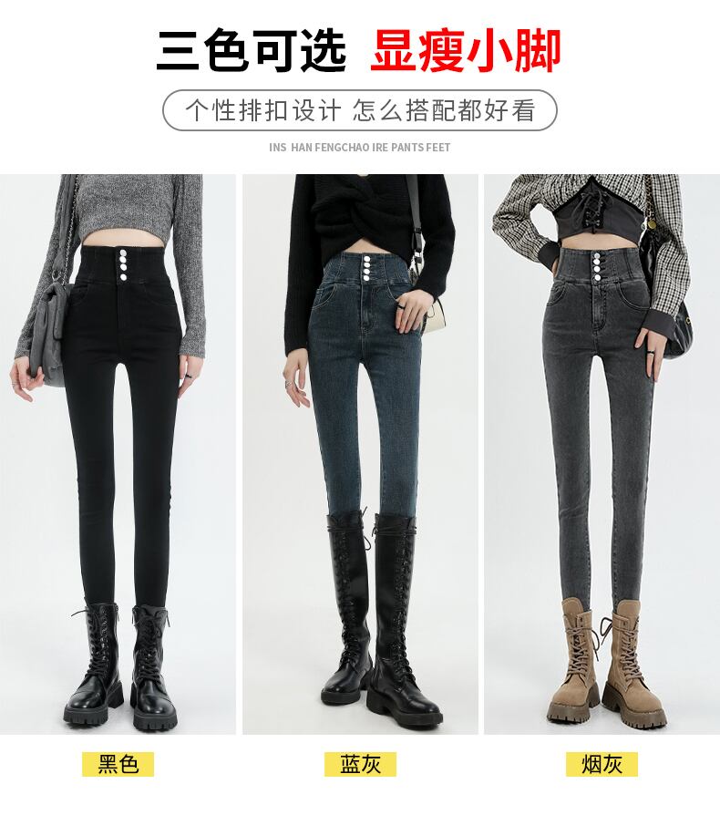 ブラック ペンシル パンツ 秋冬 ハイウエスト ジーンズ レディース 伸縮性 ブレスト デザイン ペンシル パンツ スリム フィット 9点パンツ トレンド エラスティック オータム 秋物 ウィンター 冬物 youqi96725610906
