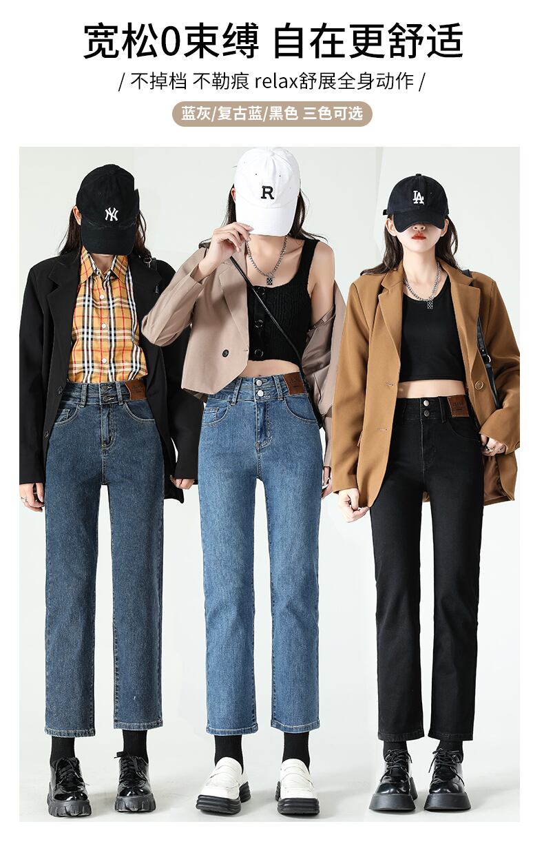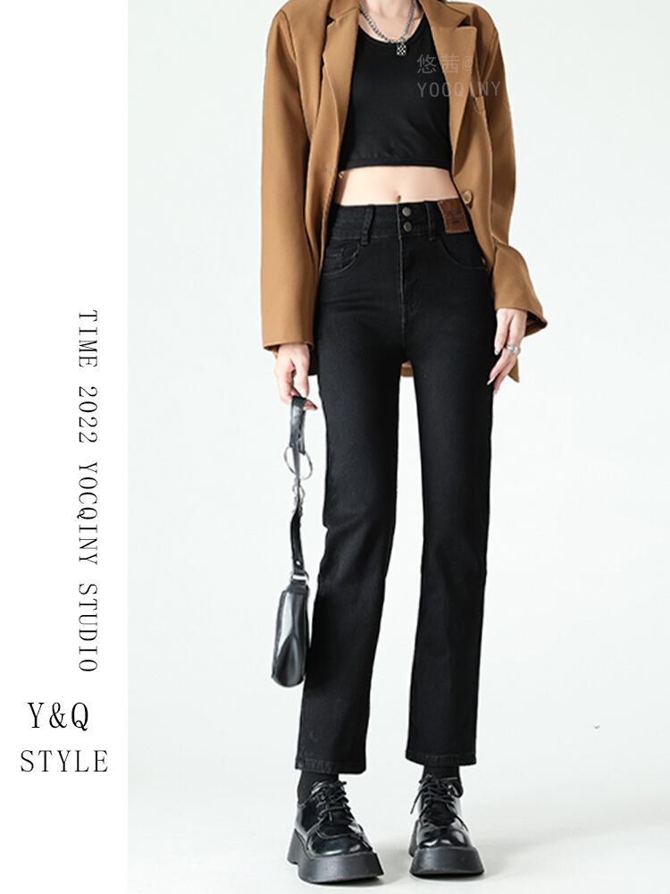 今年流行の新作ハイウエストシガレットパンツ、細身のストレートジーンズ、子供スタイル、ネットセレブの着こなし、九点小 youqi42947013632