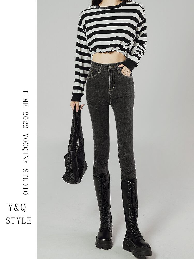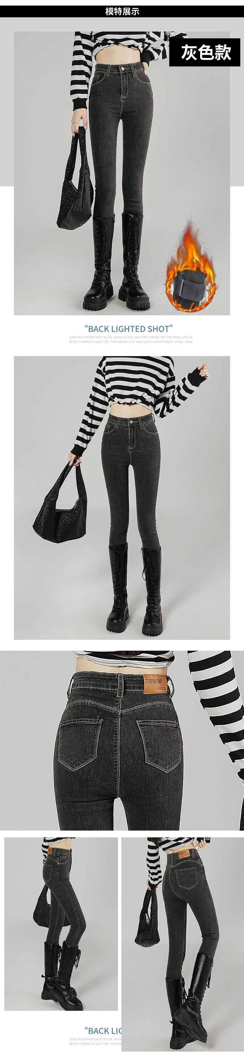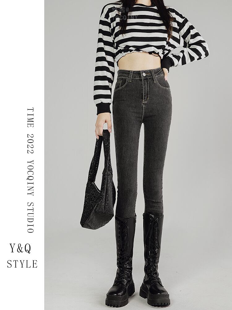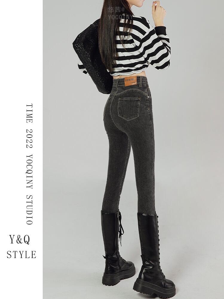 2022 秋と冬の新スタイルプラスベルベットハイウエストジーンズ女性の弾性スキニーヒップリフティングパンツ 9 点ペンシルパンツ小 ハイウェスト エラスティック 伸縮 オータム 秋物 ウィンター 冬物 youqi62343553754
