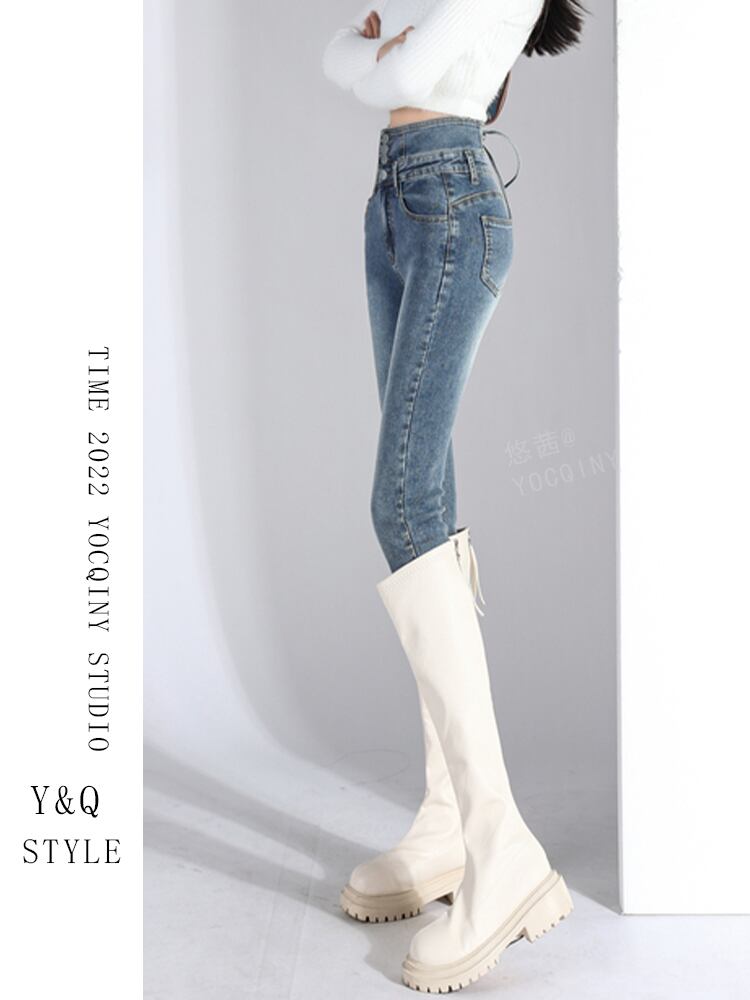 甘い秋のハイウエストジーンズの女性のペンシルパンツは、背が高くて薄いスキニーパンツのタイのデザインの桃のお尻です 大人ガーリー スウィート キュート カジュアル オータム 秋物 youqi5530669007
