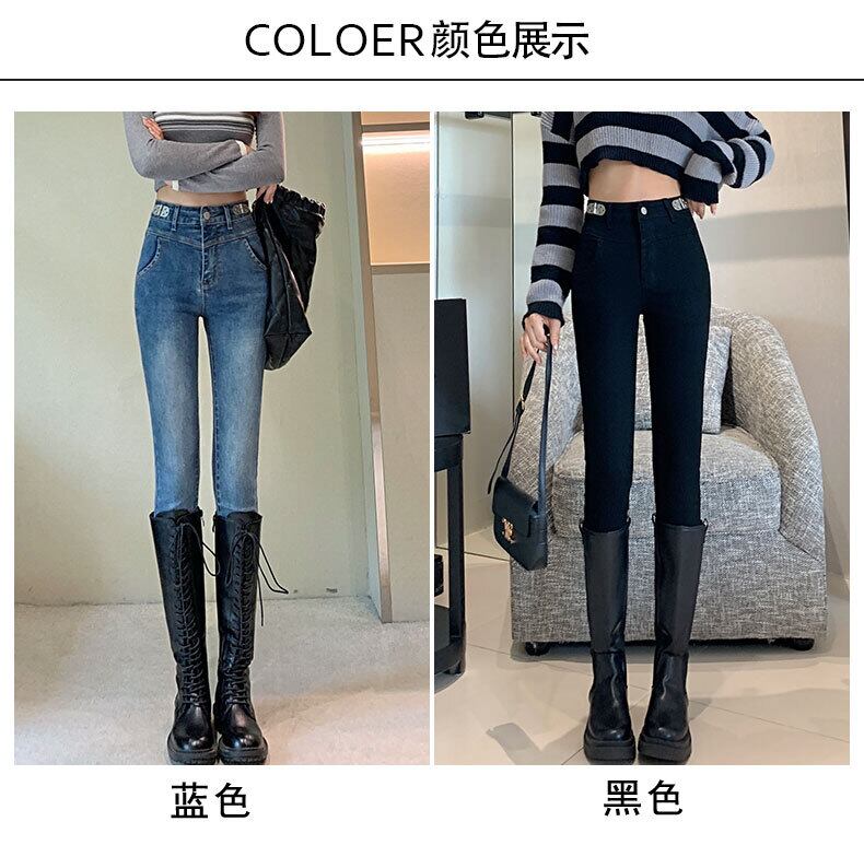 2022 新ハイウエストジーンズ女性の黒スリムフィットペンシルパンツ痩身ペンシルパンツタイトな弾性 9 点パンツ ブラック エラスティック 伸縮 youqi87835579193